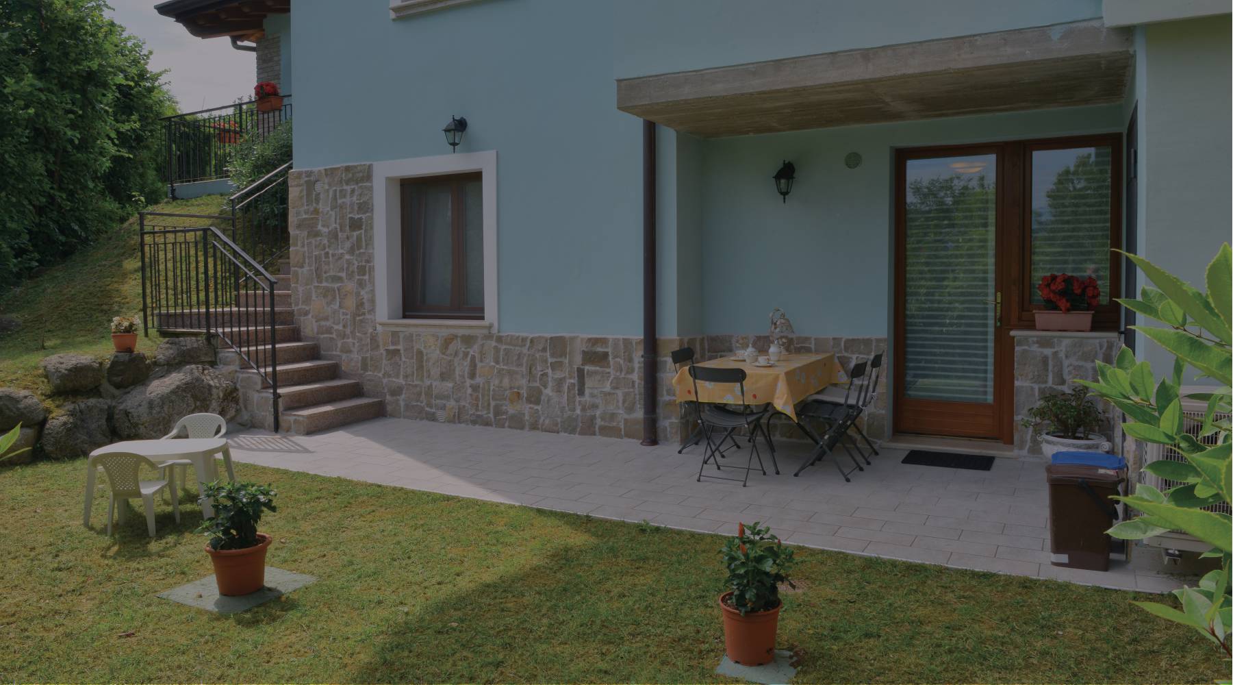 Appartement DOMENICO besteht aus einem großen Wohnzimmer mit Schlafsofa mit TV-Eck und einer wunderschönen Einbauküche mit allen Annehmlichkeiten, Backofen, Gas, Kühlschrank, Kaffeemaschine und Wasserkocher. Es gibt zwei Schlafzimmer, ein großes Doppelzimmer mit einem großen Kleiderschrank und ein Yimmer mit 2 Einzelnbetten. Das fabelhafte, große Badezimmer mit Dusche, WC, Bidet und Waschmaschine. Alle Zimmer sind mit Klimaanlage und Heizung sowie kostenfreiem Internetzugang ausgestattet. Sie können draußen in der kleinen Veranda mit natürlichem Grünblick essen oder sich im Garten erholen. Der Pool ist nur wenige Schritte von dem Appartement entfernt. Für Ihr Auto haben Sie einen internen Parkplatz zur Verfügung. Beim Appartement DOMENICO ist darauf zu achten das hier der Zugang über eine Außentreppe erfolgt.